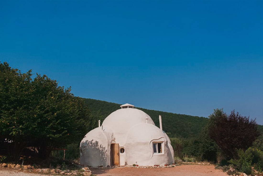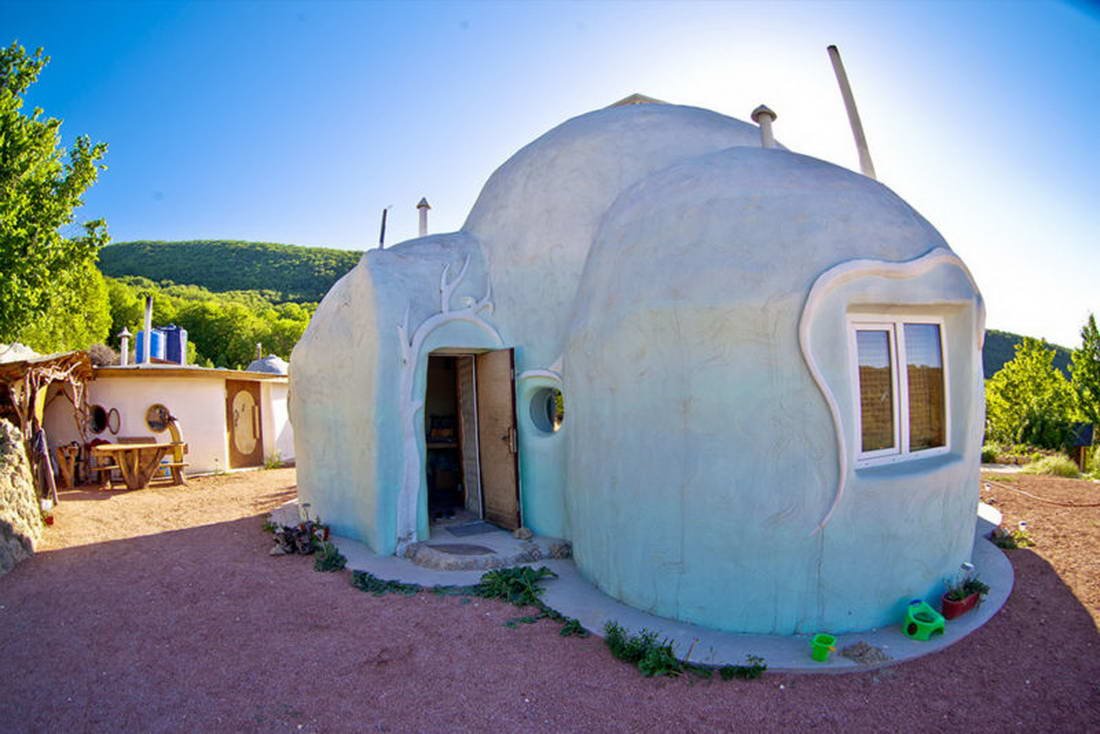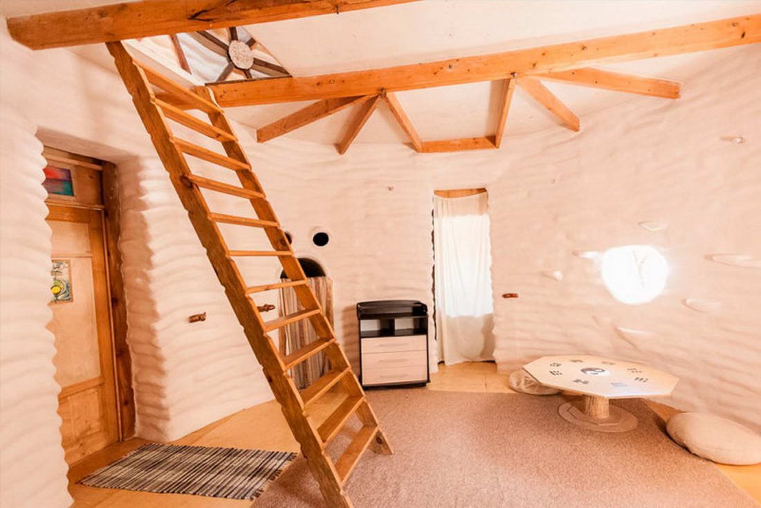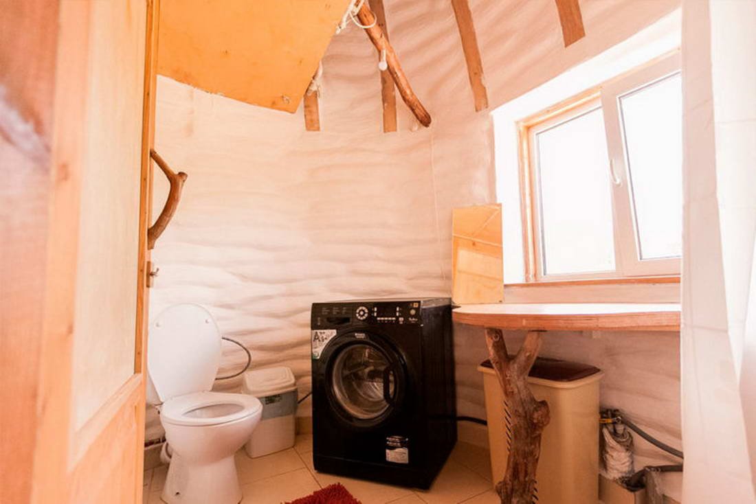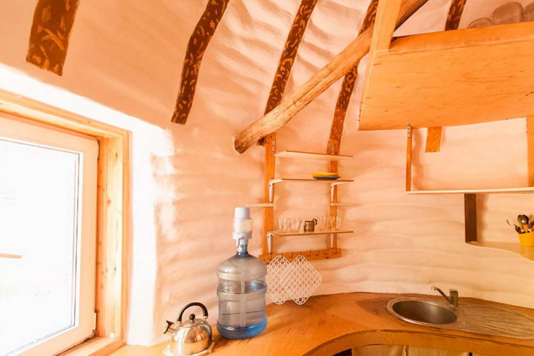 Двухэтажный эко-дом, выстроен из натуральных материалов, уникальный арт-объект, построенный на месте силы. Внутри находятся все удобства: туалет, душевая, розетки.