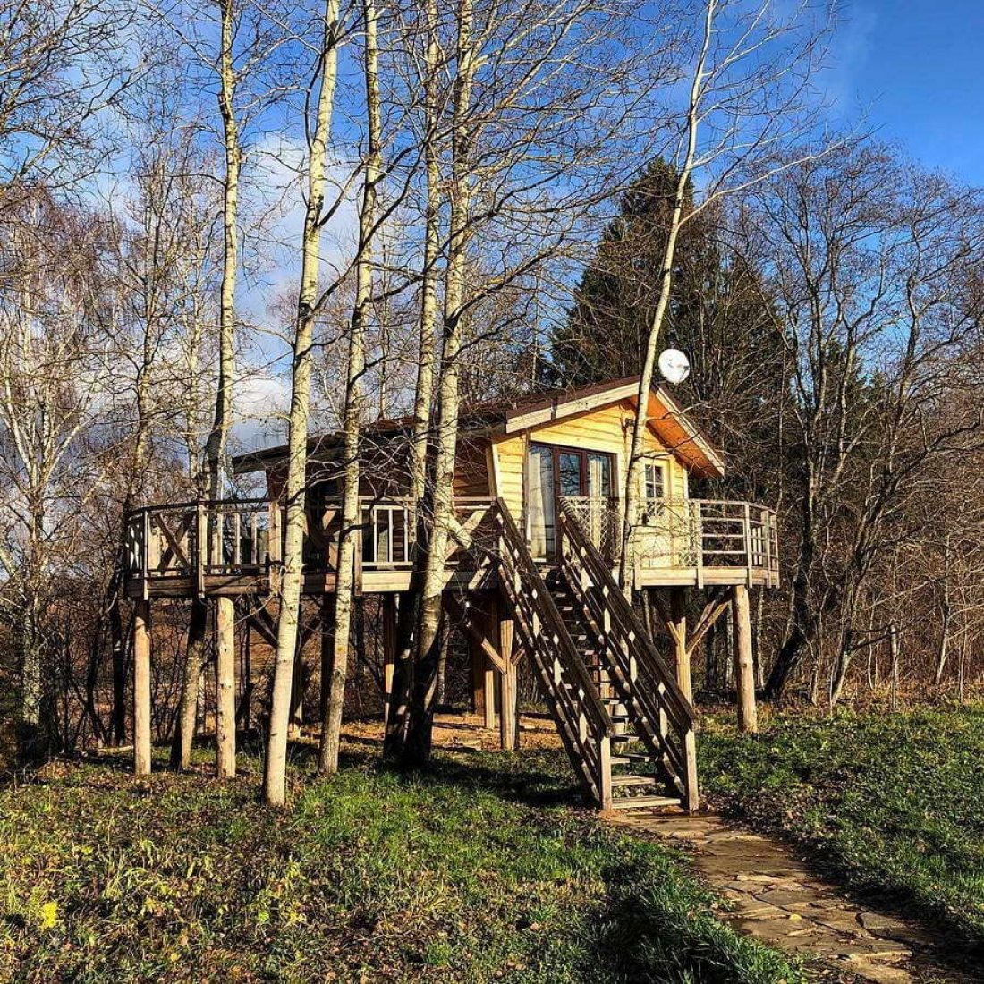 На ваш выбор у нас есть домики на деревьях, А-образные домики, шале и номера в альпийском стиле.